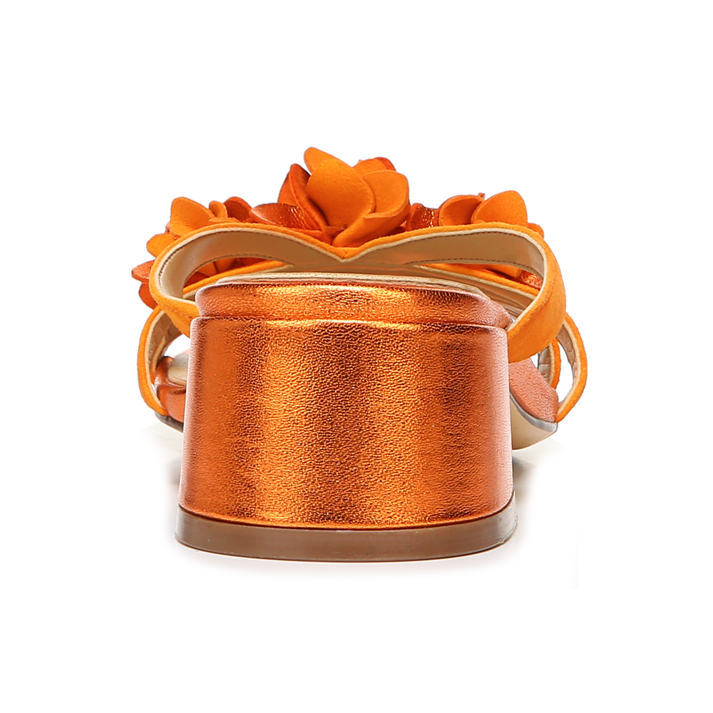 • Dressy slide sandal with floral details.