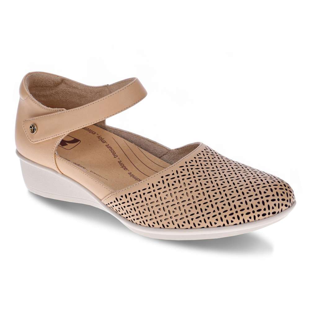Delicate perforations adorn these stylish mary jane shoes, ensuring a soft, flexible fit. A tapered wedge adds just enough height, bridging the gap between work and weekend-wear. Like its namesake city, Osaka brings together modern styling while paying homage to a traditional silhouette. These orthopedic shoes for women feature a removable insoles which allows for the insertion of custom orthotics.